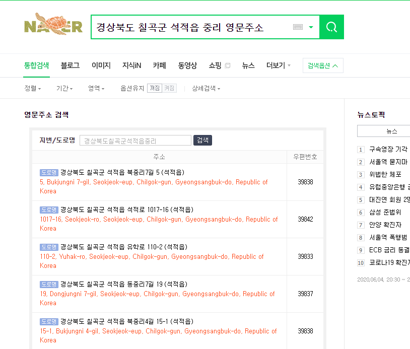 그러면 이렇게 영문주소가 나오는데 상세 주소까진 굳이 적을 필요가 없으나.