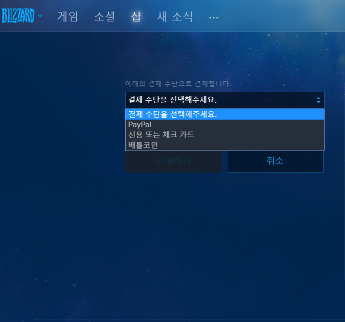 결제수단은 총 3가지인데 paypal, 신용 또는 체크카드 (Credit or Debit card)그리고 배틀코인(Battle Coin)이다.