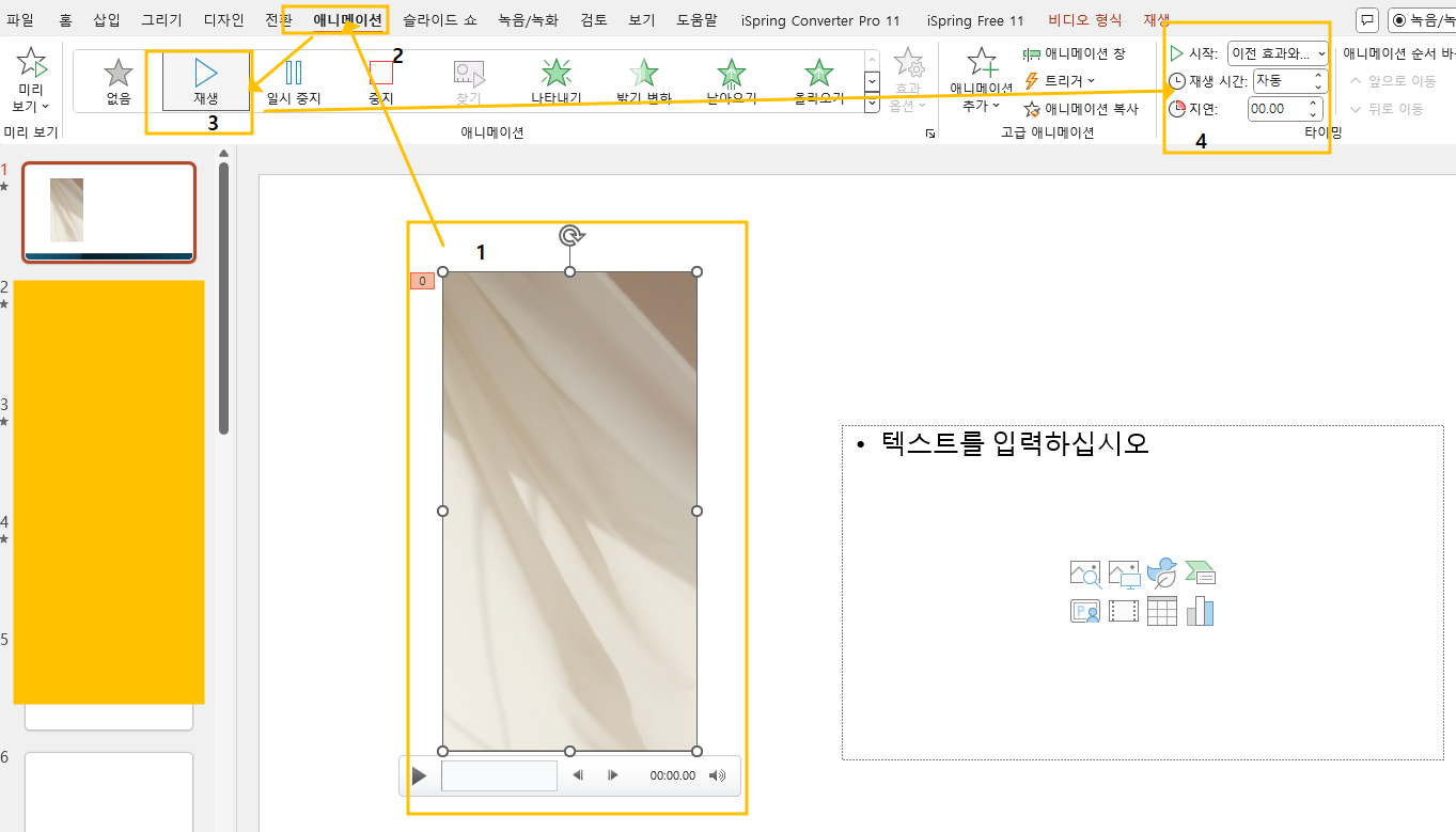 파워포인트에서 내가 원하는 영상을 넣고 페이지 슬라이드가 시작될때 자동으로 재생되어 나오게 하는 방법을 기록한다.