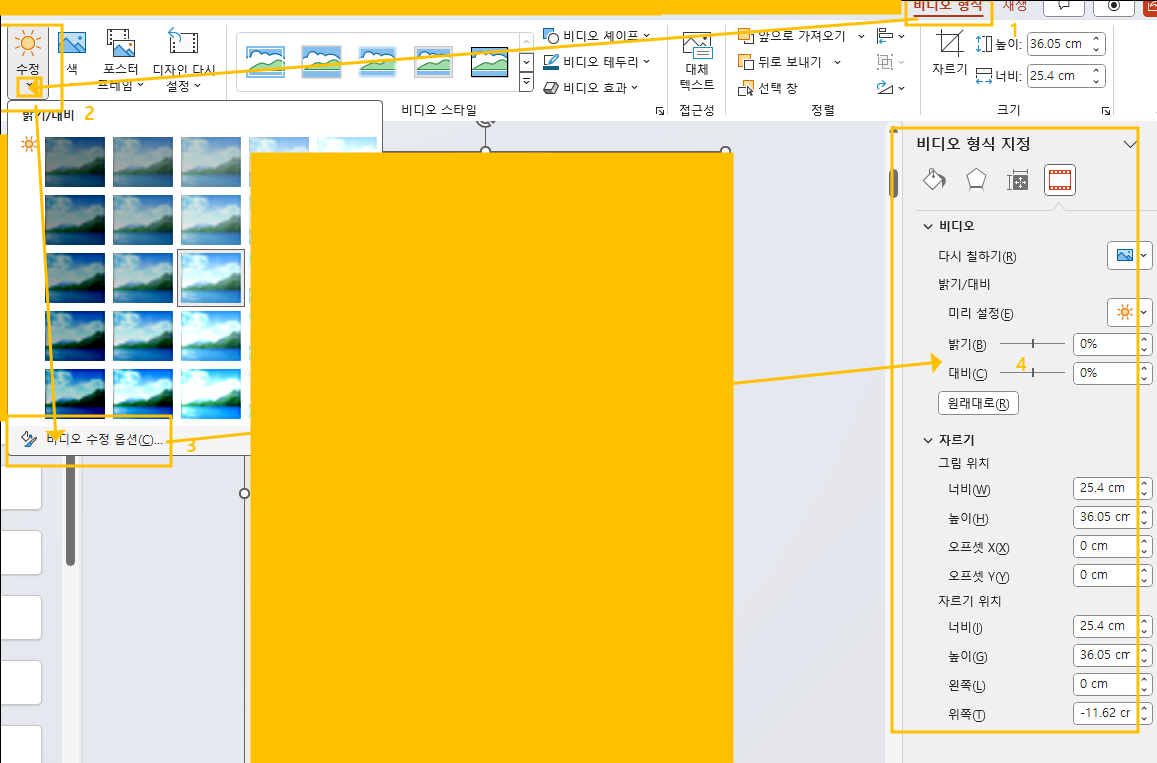 파워포인트에서 영상에 밝기 대비 내 마음대로 수정하는 방법 본문