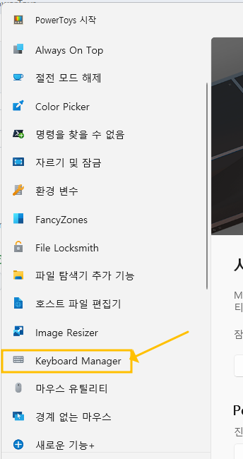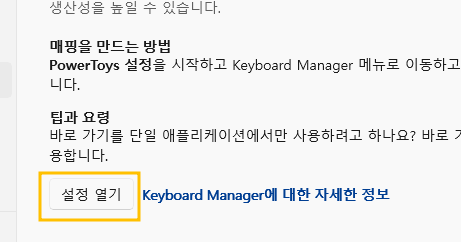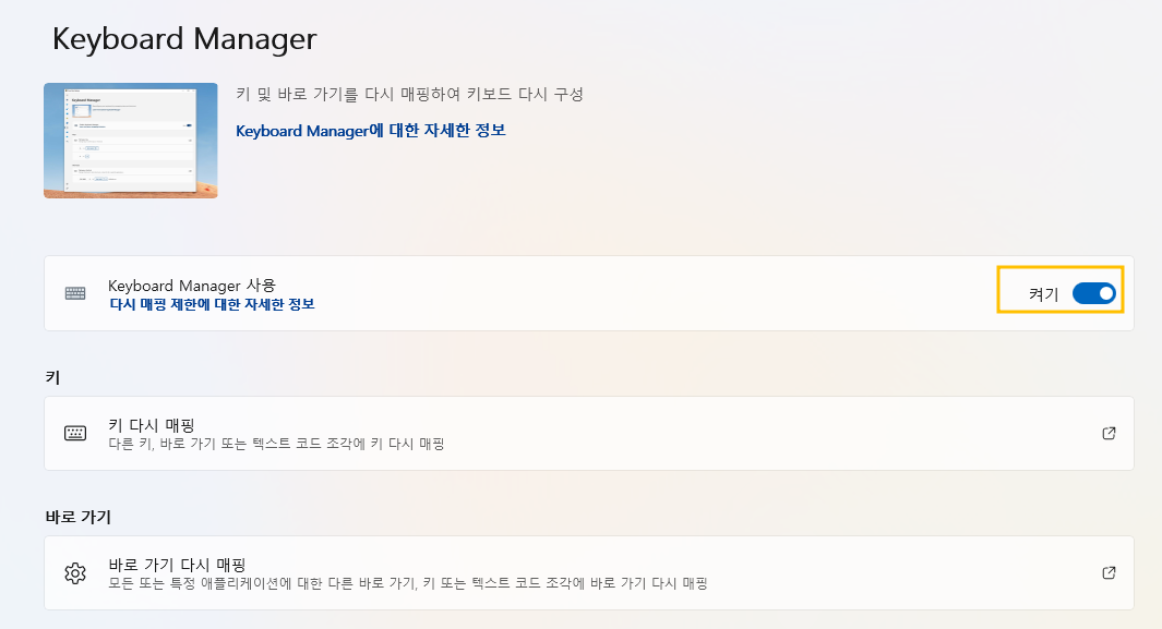 - PowerToys 실행 후 "Keyboard Manager" 활성화