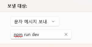 - 실행될 내용으로 미리 설정한 문구 입력을 설정할 수 있습니다.