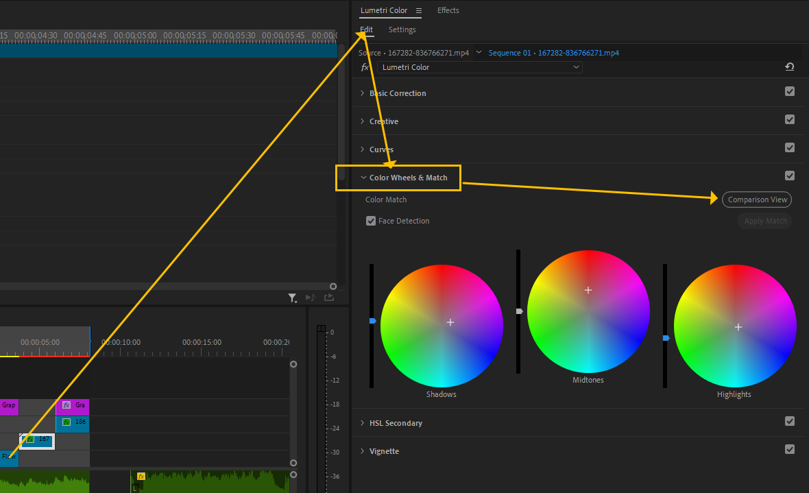 그 상태에서 그래픽 Edit를 열어 Color Wheels & Match를 눌러 compaisom View를 클릭해준다.