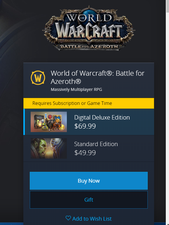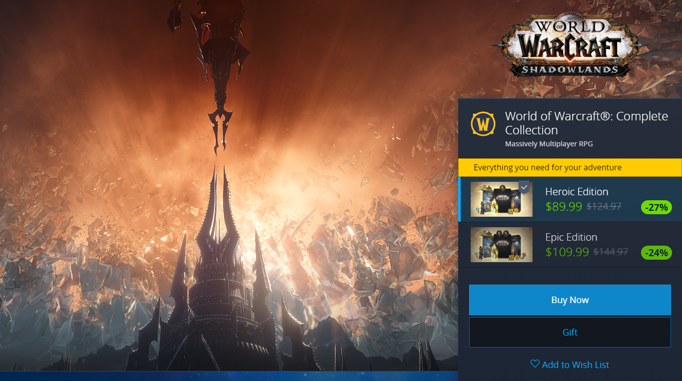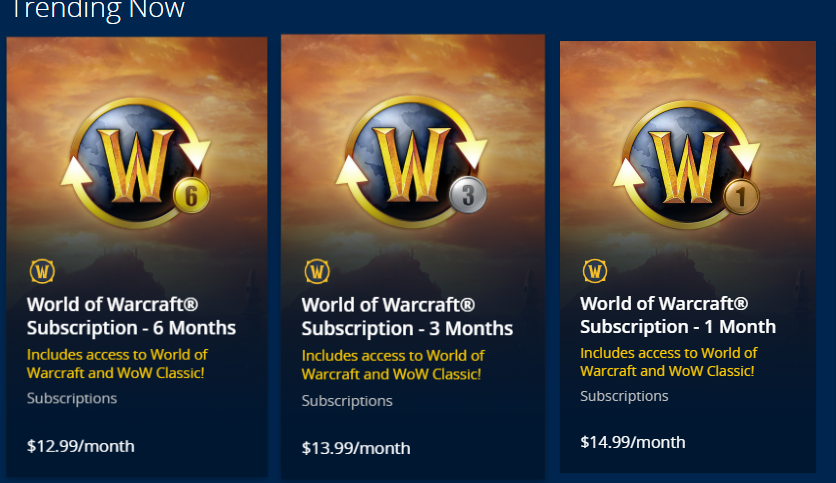 한국 와우는 월단위 정액제만 결제하면 게임 다운로드 및 플레이가 되지만 북미서버 와우는 하고자하는 확장팩과 월 정액료를 결제 하여야 정식 게임이 가능하다. 그 중에서도 여러가지 구매 패키지 종류가 있는데 알아보자.